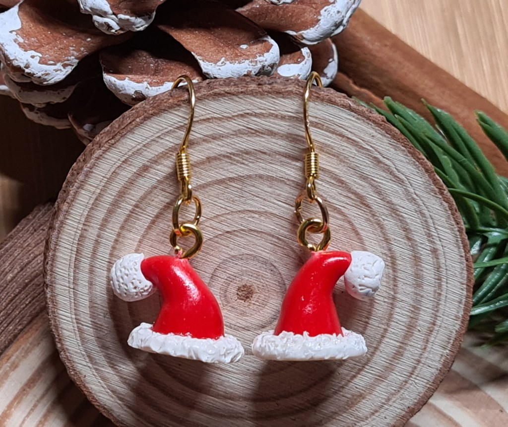 Et pour finir, les traditionnels bonnets rouges et blanc de père Noël montés sur des crochets en argent plaqué or.