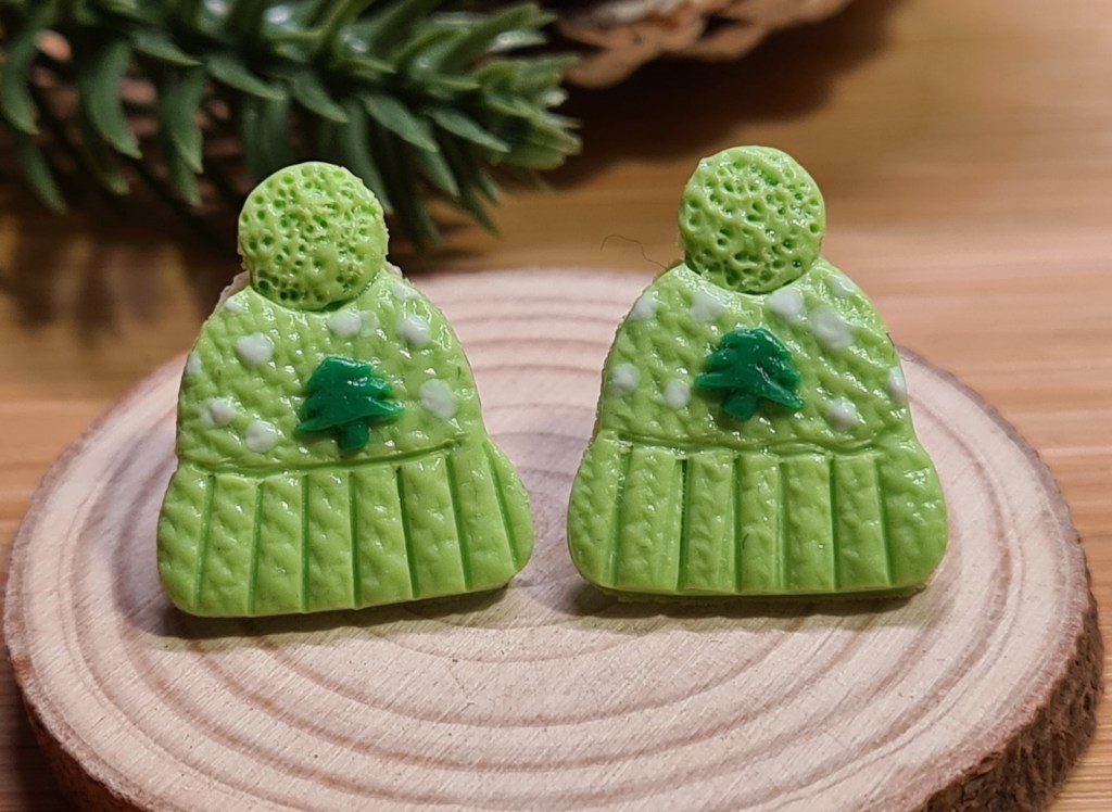 Pour les plus frileuses, le rendu de ce montage est aussi spectaculaire avec des lainages en pâte polymère… les bonnets et petites moufles sont rehaussées d’étoiles et de touches d’argent.