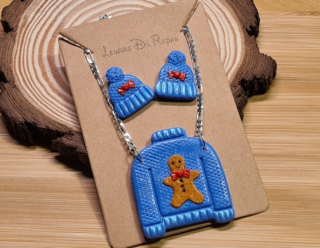 Pour rester dans les lainages, voici quelques parures de Noël qui vous permettront d’arborer un pull de Noël de façon inattendue… Des colliers pull de Noël accompagnés de puces en forme de bonnets assortis.