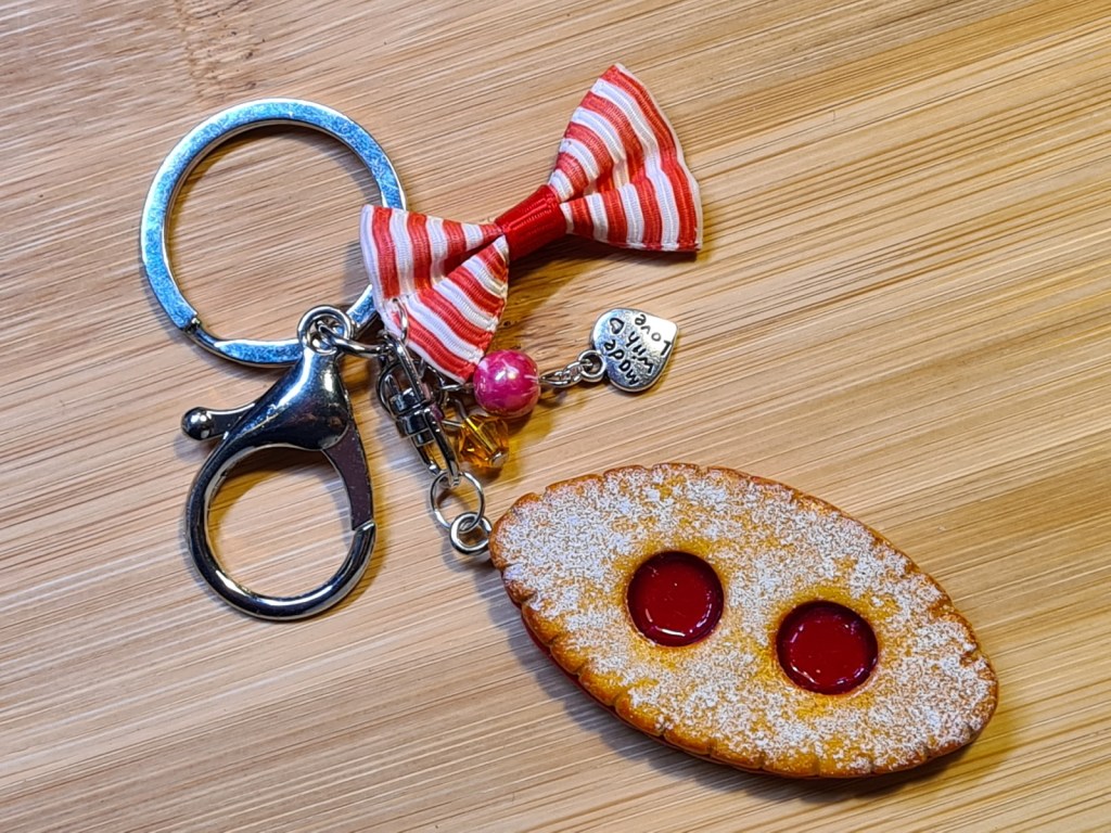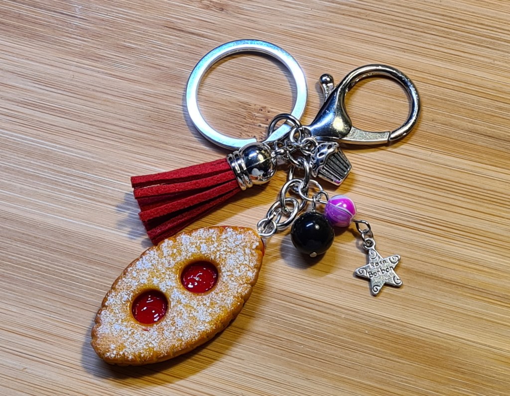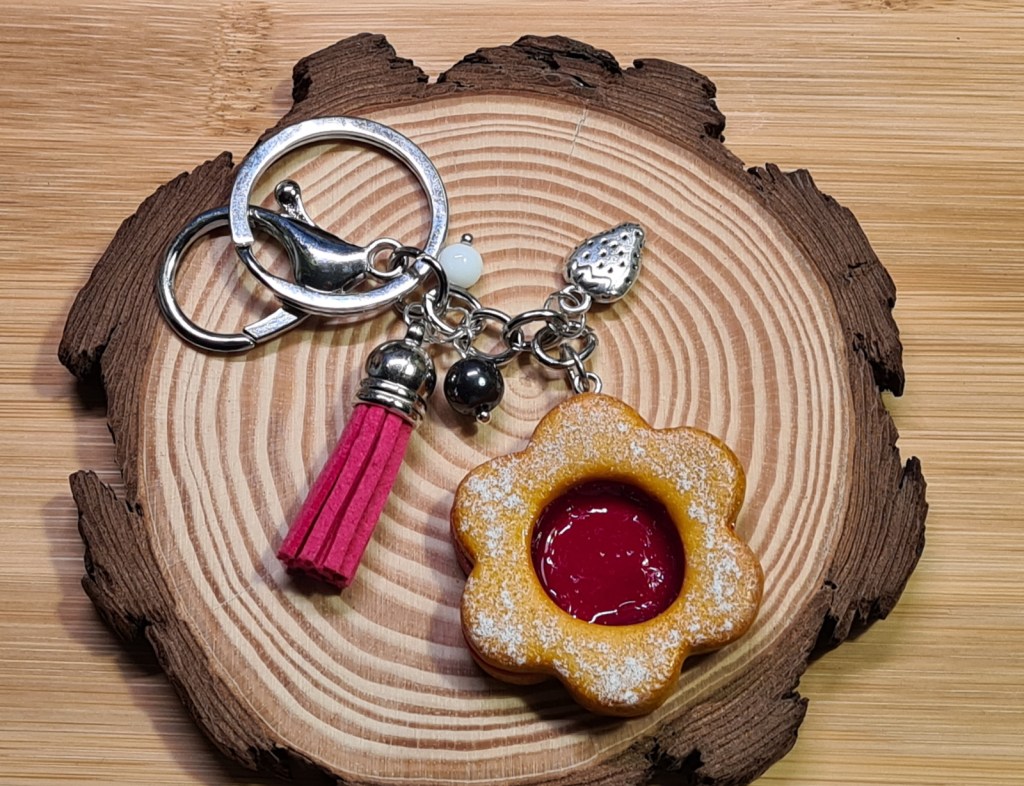 En ce début d’année, j’avais envie de faire du réassortiment dans ma boutique en particulier dans la catégorie des porte-clés où il ne restait plus beaucoup de choix. J’ai couplé cela avec mon envie de réaliser des sablés à la confiture (j’aime beaucoup faire ce genre de créations très gourmandes et cela faisait longtemps que je n’avais pas eu l’occasion d’en fabriquer) pour créer une mini collection de biscuits sablés.