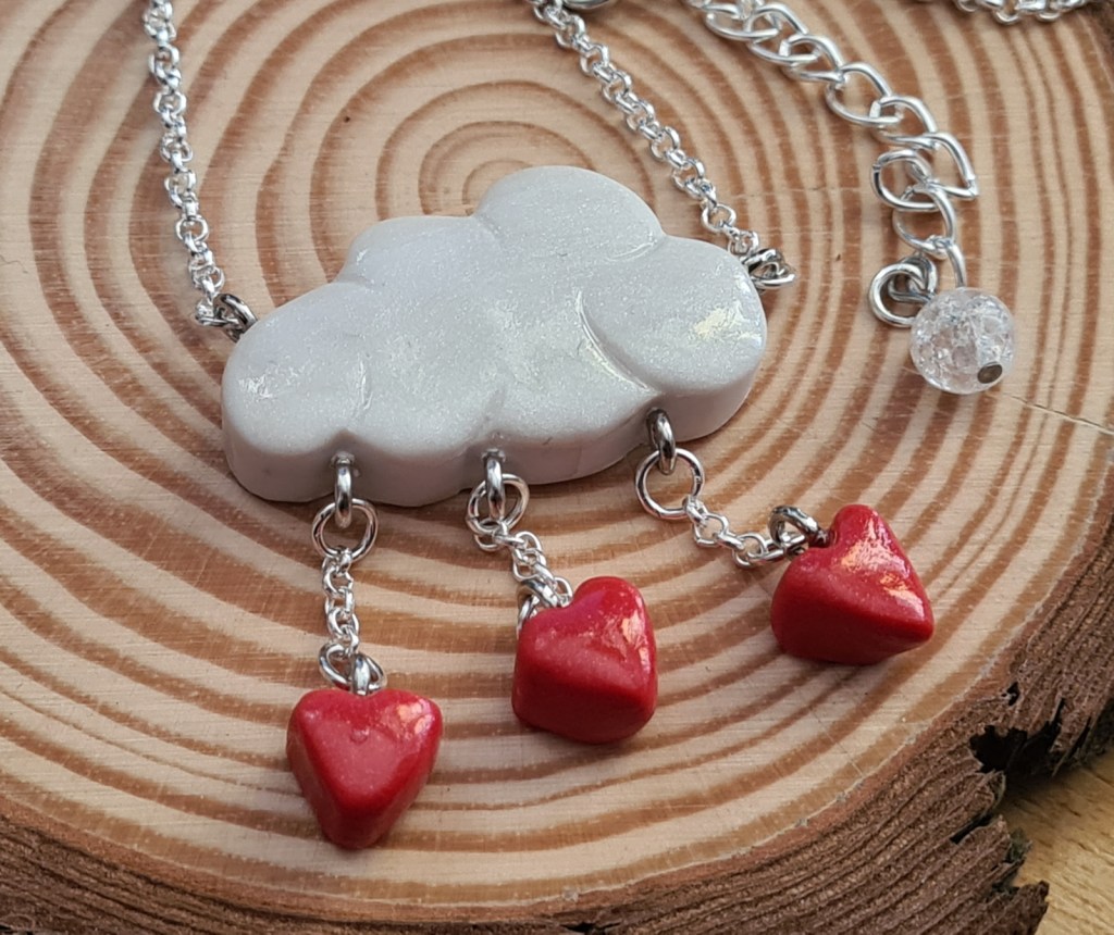 Sur le même thème, j’ai créé un collier orné de breloques en forme de cœur. Ce petit nuage d’amour sera parfait pour la Saint Valentin !